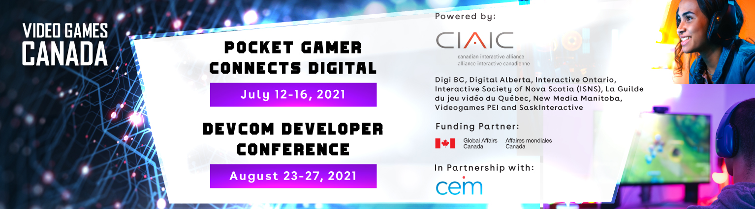 Join us for Video Games Canada this summer and be one of the 40-50 Canadian independent video game developers to participate in Pocket Gamer Connects Digital 2021 and DevCom Developer Conference 2021 !