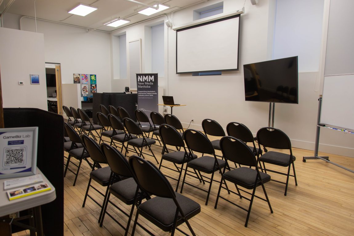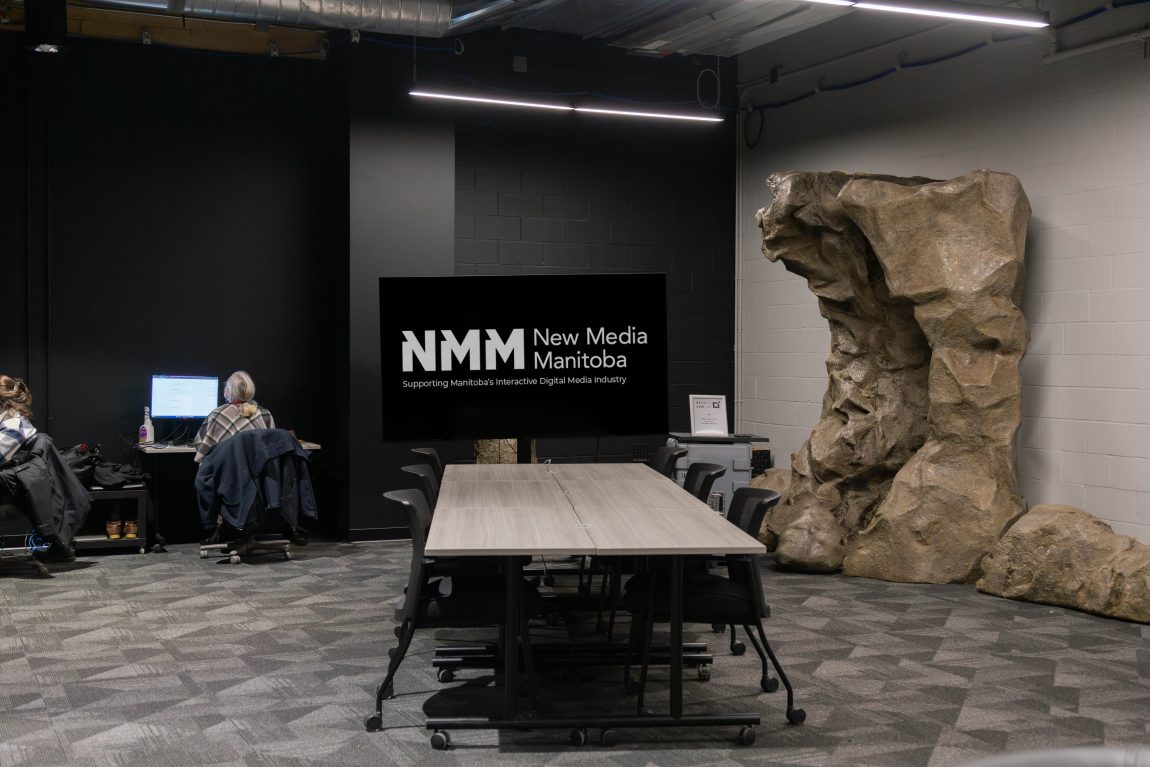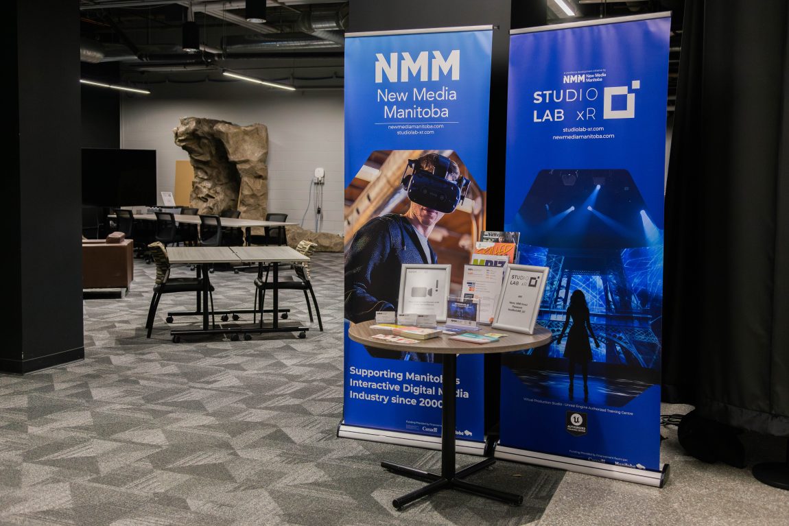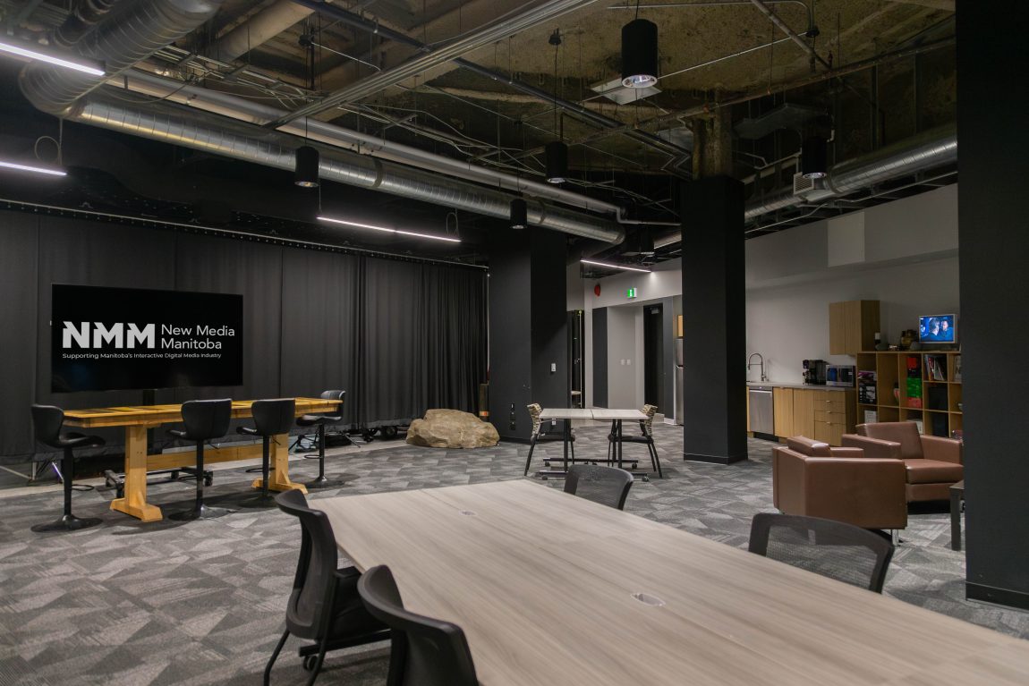 StudioLab xR (201 Portage Avenue, Unit 100) is New Media Manitoba’s latest addition to the province’s tech and innovation landscape. This 5550 sq ft facility’s mandate is to support workforce development and innovation in emerging fields of Extended Reality (xR). StudioLab xR ‘s virtual production stage and classroom are designed to provide the technology and expertise needed for companies and producers need to bring their creative visions to life.