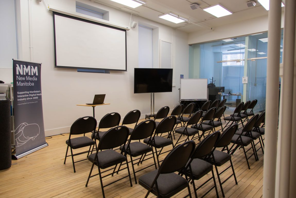 Discover New Media Manitoba’s spaces to elevate your meetings, events, and projects. Located in Winnipeg’s historic Exchange District, choose between our fully equipped studio space on Albert Street or our cutting-edge virtual production facility at Portage & Main, each offering flexible rental tiers to match your needs and vision.